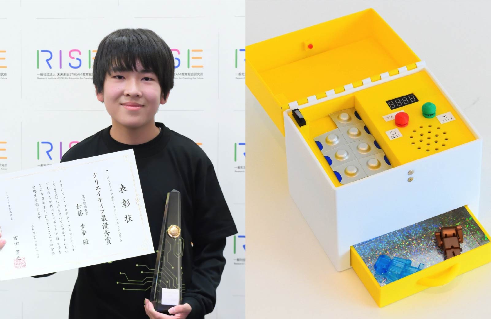 舌下免疫療法を頑張る子供のためのおもちゃ型薬箱。音声での服薬案内、待ち時間のクイズ、ごほうび機能で服薬をサポート。病院へのLINE通知機能により、継続的な治療を後押しする。